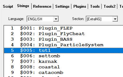 Do not forget to then add a suitable ExtraNG string entry for the file, which in our example should simply be tut1, no extension. Note down whatever ID number is assigned to this string (e.g. ID 5) and then add the following line to the appropriate [Level] entry: