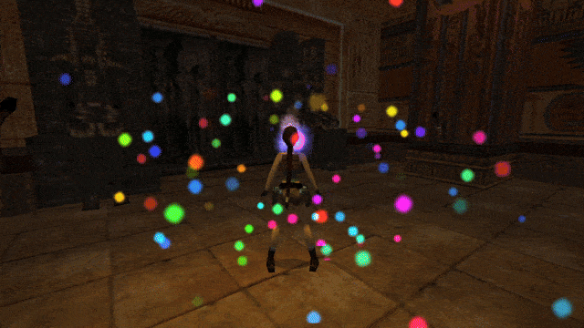 If you save, launch the game and go into the level corresponding to the level script, you should see some colorful, silly particle effects dance around Lara, whose head is on fire thanks to the previous module!