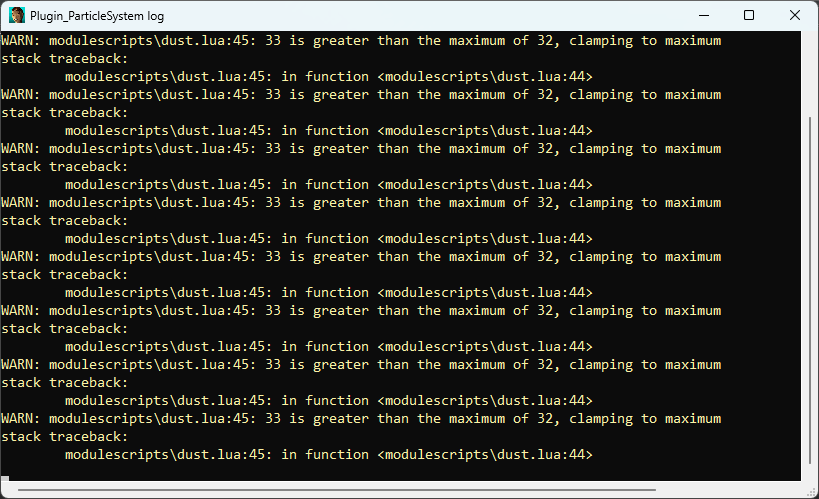 WARN: modulescripts\dust.lua:55: -1 is less than the minimum of 0, clamping to minimum