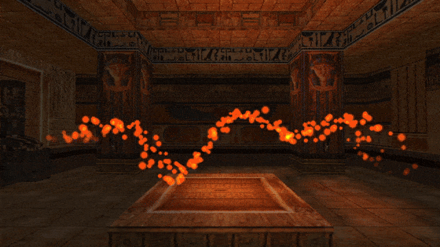Up to this point, we have implemented some effects that were visually impressive eye candy, but were otherwise ambient and didn’t have much influence on the world around them. Starting from this chapter, we will be implementing particles that exhibit complex, dynamic behavior and can have tangible effects on the game itself, beyond just the graphical qualities they provide. Particles, which can be characterized by reactivity and/or interactivity (with Lara, other entities, the room geometry or the game engine / TRNG itself). This is made possible thanks to update functions, which allow to define the collective behavior a group of particles will exhibit. This mechanism permits the particles to act in a user-defined way and have unique, scriptable attributes (such as colliding with the environment, setting Lara on fire, doing damage on contact with an enemy, homing onto a target, etc).