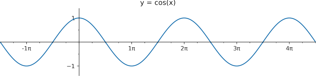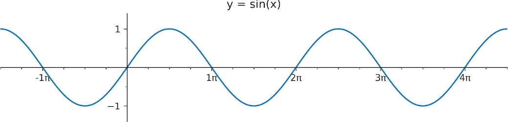 We will now entertain a scenario in which we want the particle velocity to depend on the age percentage in some way. The specifics of it are entirely up to us. If you need a suggestion, what about using the trusty trigonometric functions, sin() and/or cos()? To come up with a velocity formula, we’ll utilize what we know of the t-parameter. Considering it has a 0-1 range, regardless of the particle life span, we can perform mathematical operations on the value given by part.t to end up with a velocity corresponding to the current age of the particle. The sin() and cos() functions are continuous (without any gaps) and periodic (repeating). They repeat with an interval of 2π (2*pi) radians and smoothly oscillate between values of 1 and -1. If this language didn’t speak to you, or perhaps you’re blanking out because you have not dealt with any of this in a long time, look at the graphs of both functions below, they should jog your memory:
